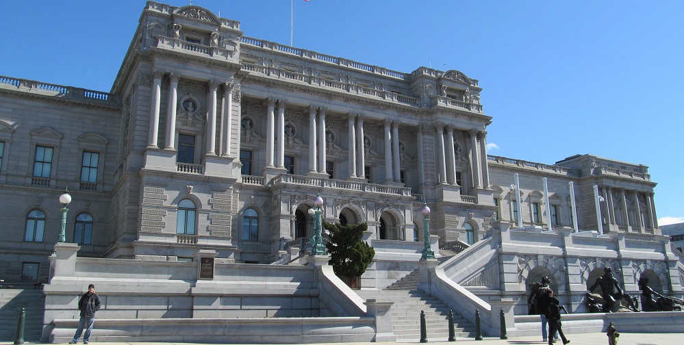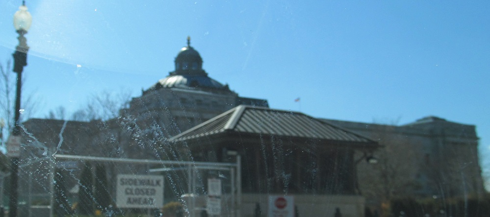 Southerly, westerly and northerly views of the domed Thomas Jefferson Building, built in 1897 to house the Library of Congress - hence its proximity to the Capitol.