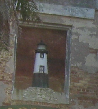 No, these folks aren't posing, they just happened to be turned vaguely in my direction. No, the girl in front isn't picking her nose, it has nothing to do with why I cropped her out up to her sunglasses. Why would you even think something like that? It's ridiculous, okay, in fact yes, she was picking her nose, and that affected how I cropped this. If you're her parents, sorry that I don't have more evidence to show her future boyfriends, but at least you have this caption. The lighthouse above the market banner is the Key West Lighthouse, which I've linked at bottom for you to explore when you're done with this page. No skipping ahead.