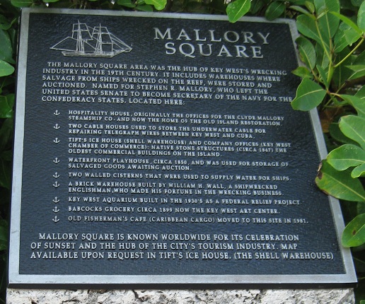 Since I'm in Mallory Square now, let's go inside Tifts Ice House, which housed ice from New England for sale because technology didn't enable ice production in Key West's tropical climate until 1890. The Conch Republic plaque, made of bleached coral, is just outside. The floor inside appears to be unrestored.