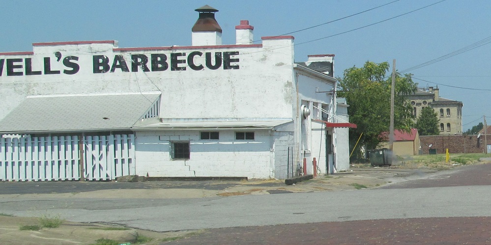 Shemwell's Barbecue is one of the only operating businesses left in Cairo. Fronting on Washington Avenue, it's halfway decent, but much better than scrounging for squirrels or orange rinds. The brick streets (more of which are featured on the Roads page linked at bottom) are indicative of how dilapidated Cairo is; the city can't afford to pave the roads, and no one cares enough (or even lives along them) to request such.