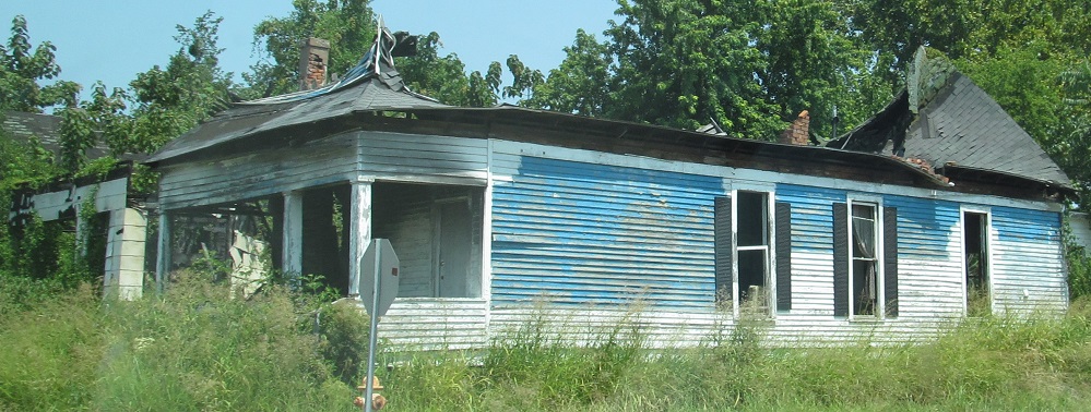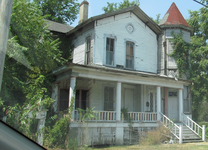 It's hard to tell if any of these houses (and car) are abandoned. Sure, they look that way, but I could believe someone still tries to live here.