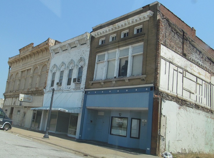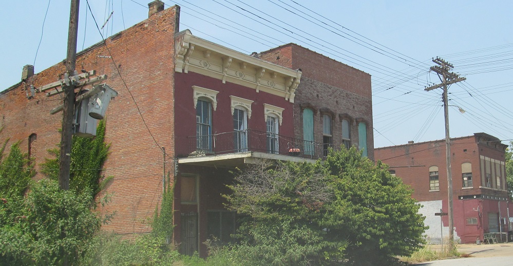 An entire block of buildings, useful storefronts in the riverboat heyday and with extra time and money invested for appearances, has been abandoned for decades. They're no longer Famous for the original reason.