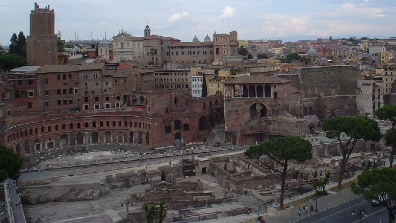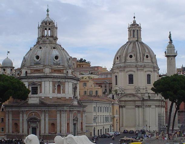 Piazza Madonna de Loreto, with Michelangelo-designed domes, from Il Vittoriano.