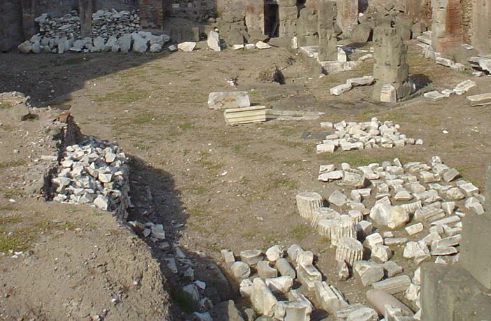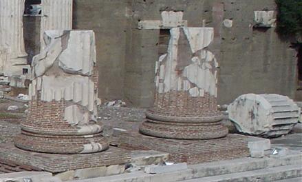Columns broken and crumbling at the edge of the Forum, by the Arch of Titus.