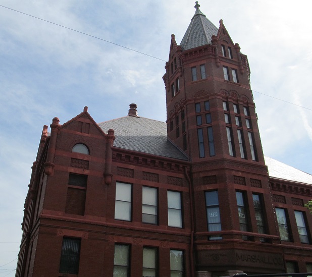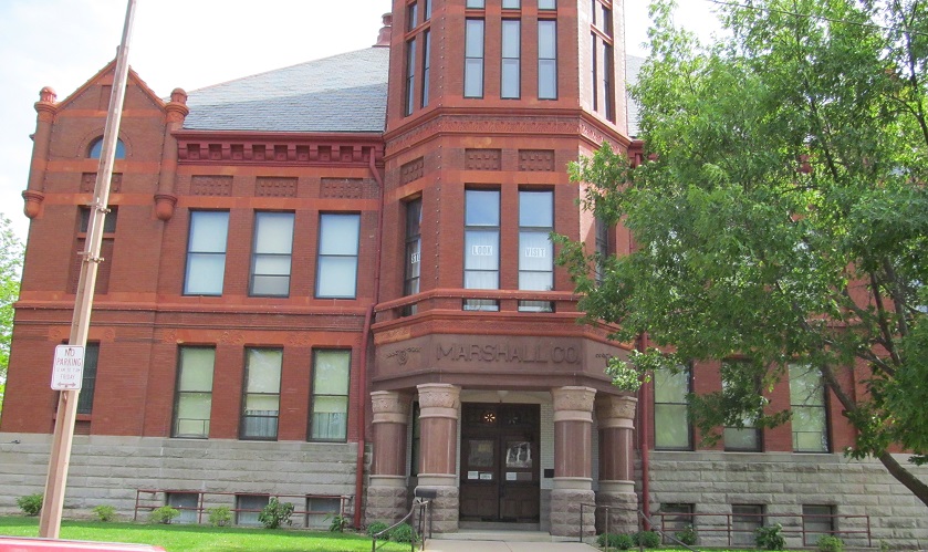 The Marshall County Courthouse is at Broadway Street and 13th Street, east of downtown.