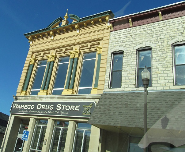 Various angles of various buildings along Lincoln Avenue in Wamego (Kansas Highway 99, the main north-south road in town).
