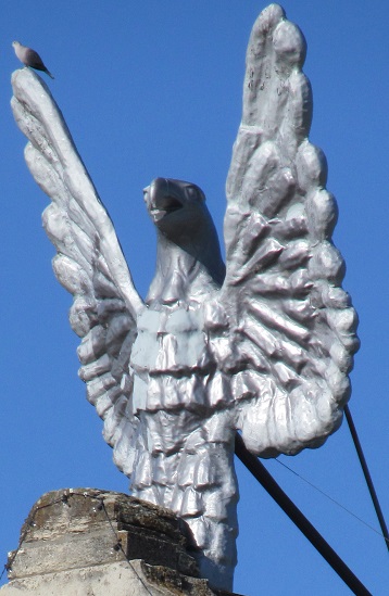 At the corner of Lincoln Avenue and 6th Street, there are wings to be found on two corners - metaphorical ones at the United Methodist Church, and actual ones atop the Rogers Building. There are actually two sets up wings up there, if you count the mourning dove. Birdception.