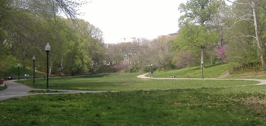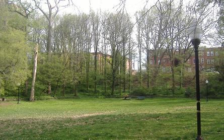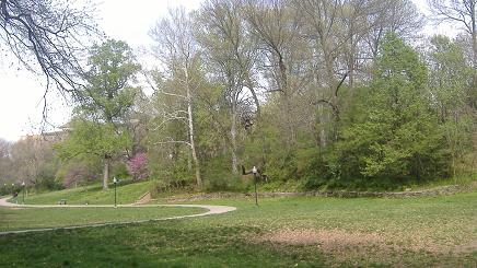 Turning onto Art Museum Drive to show you a little slice of heaven. There's a lot more to Wyman Park, which is broken by Johns Hopkins University but continues to the west and southwest and has more trees, trails, and fields. However, this little nook is the perfect urban park.