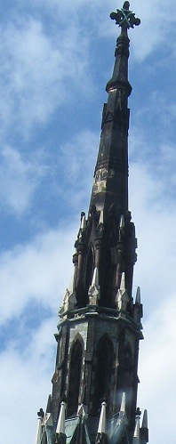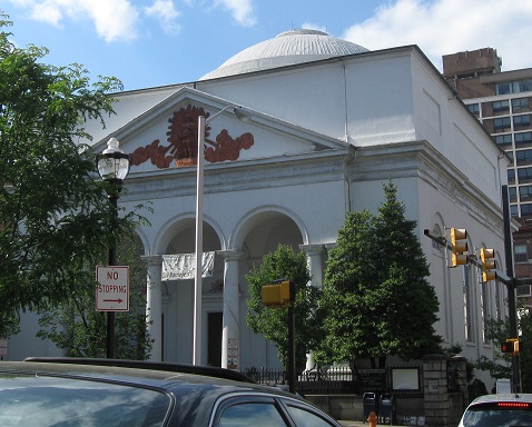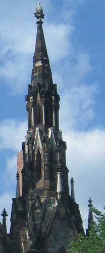 At the northeast corner of the square, Mt. Vernon Place United Church, looking splendid from afar and close.