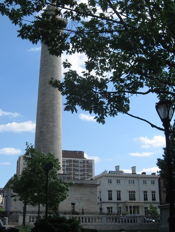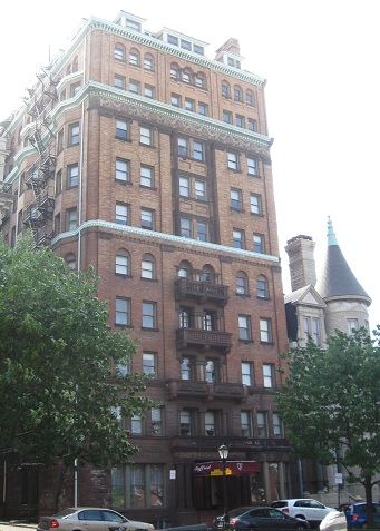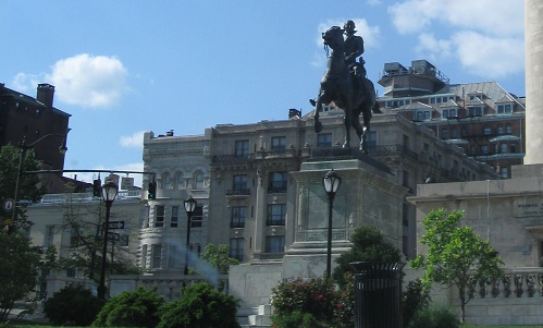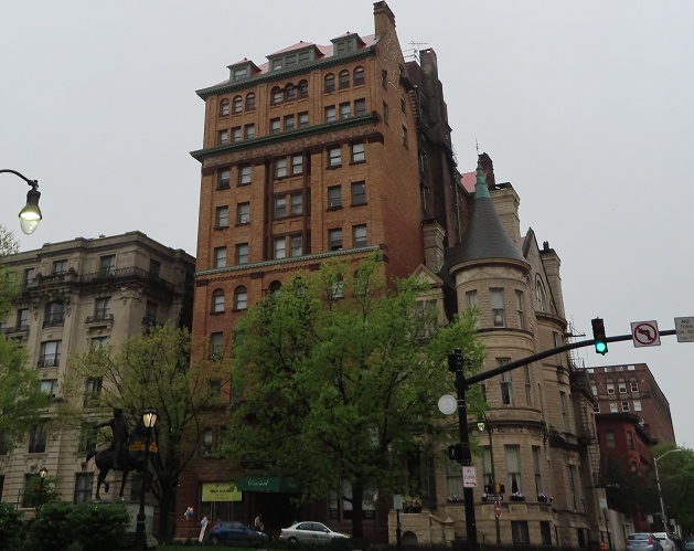 Clearing the park for good, with Stafford Apartments on the left and looking back at the monument one last time.
