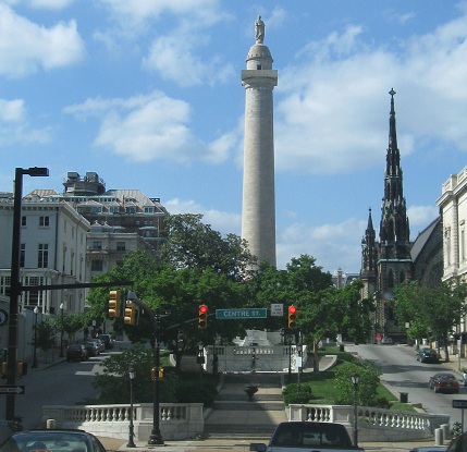 Coming up to Mt. Vernon Square Park, Charles Street splits to go around both sides - both one-way, and called "Washington Place" (for obvious reasons). I choose the right side and am rewarded with seemingly antebellum architecture.