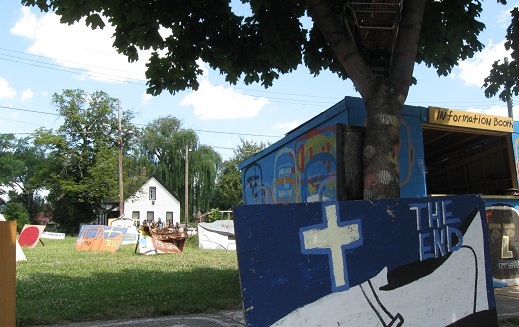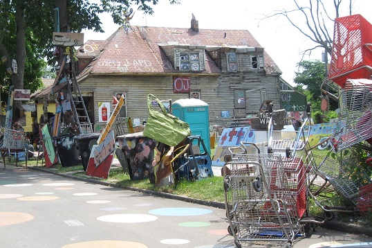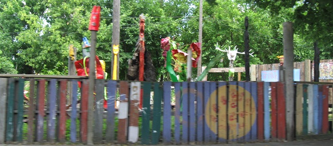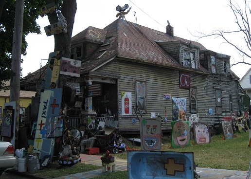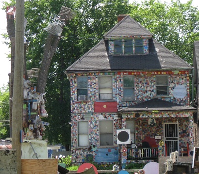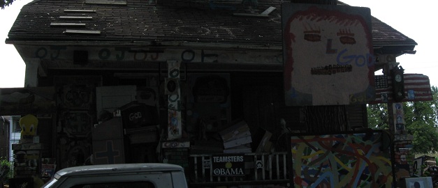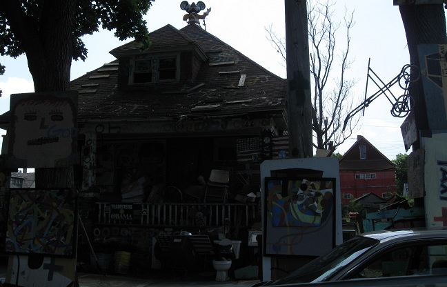 Of all the abandoned houses, even those with decapitated dolls and leering faces, this one spooks me the most. Then again, I wouldn't want to be in any of these at night. This is about where the photo on the front Heidelberg page was taken, so the street is every bit as freaky.