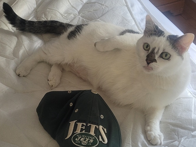 My latest cat wishes to make an appearance on this page. For now just the one photo of beloved Cookie Dough. I do not know that she approves of sports.
