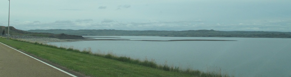 Let's start along the lake, looking south and southeast from the Highways 24/117 junction near the town of Fort Peck. The manmade lake goes for 134 miles from here. Let that sink in.