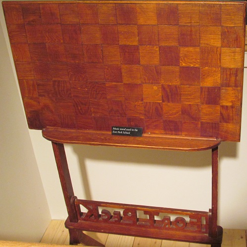 I had to close this page with this music stand due to the carved name. The Fort Peck School must have had a brief life in the 1930s-40s, because there's nothing by that name now.