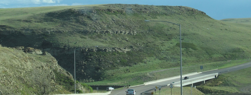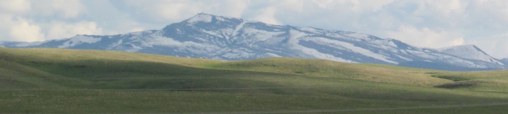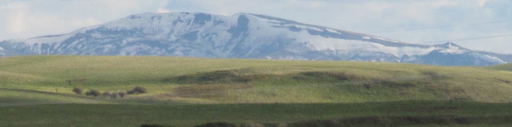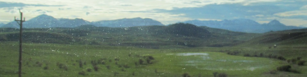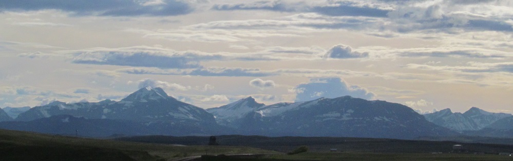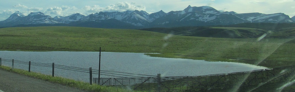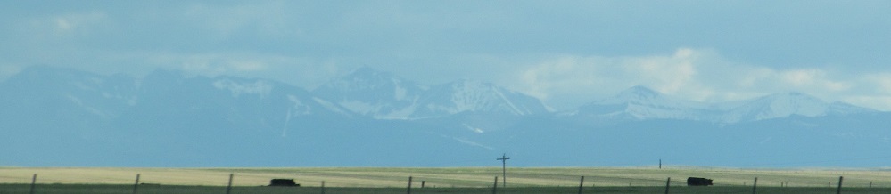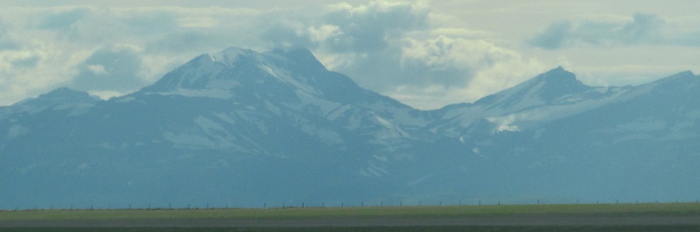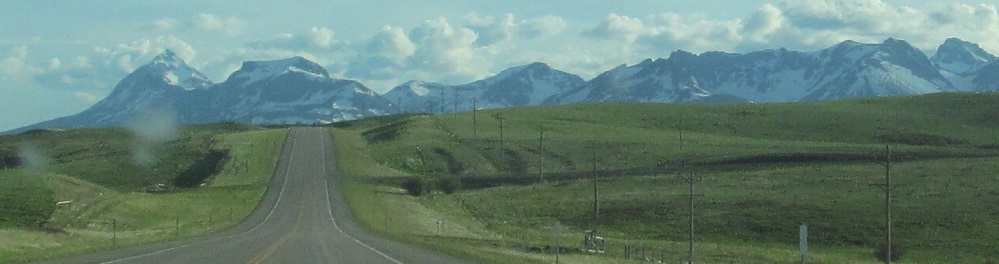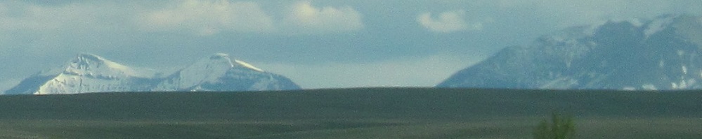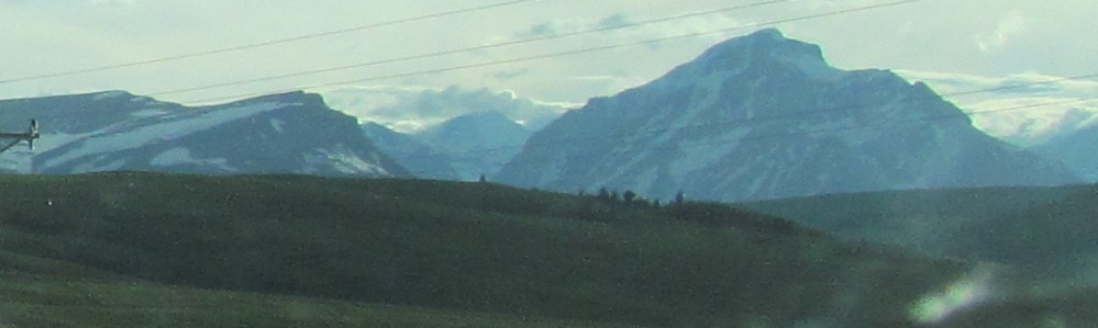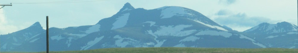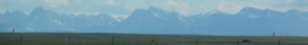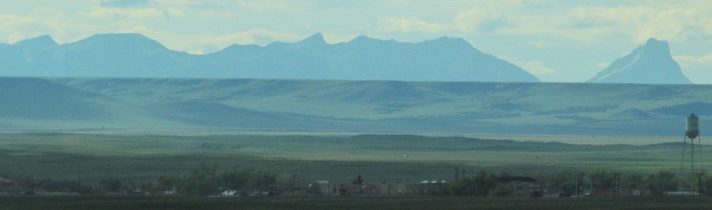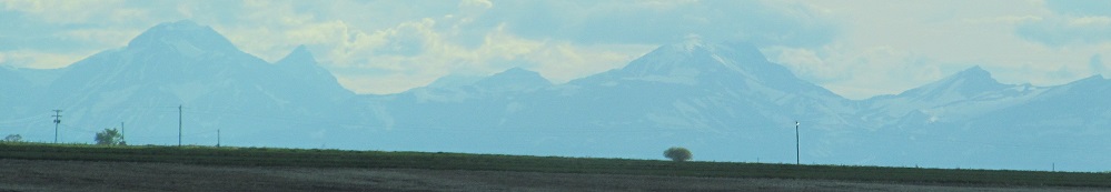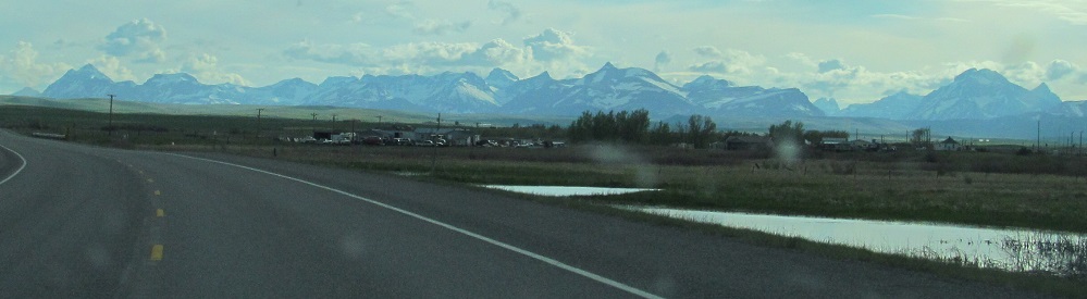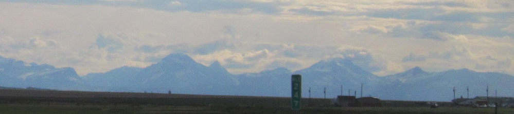 The 2nd and 3rd photos are closeups of some mountains in the first. Let's start naming these: Yellow Mountain on the left and Chief Mountain on the right, looking northwest in the last photo almost to Canada. You won't see these again, since the highway generally isn't running northwest except where it approaches Browning.