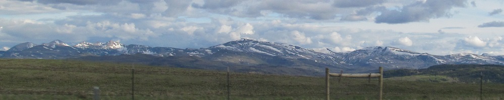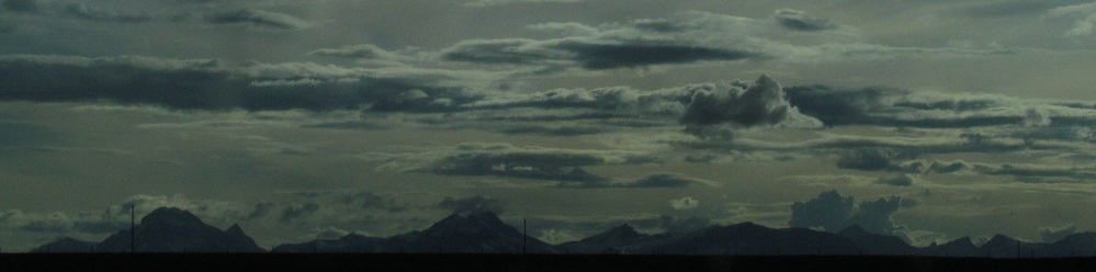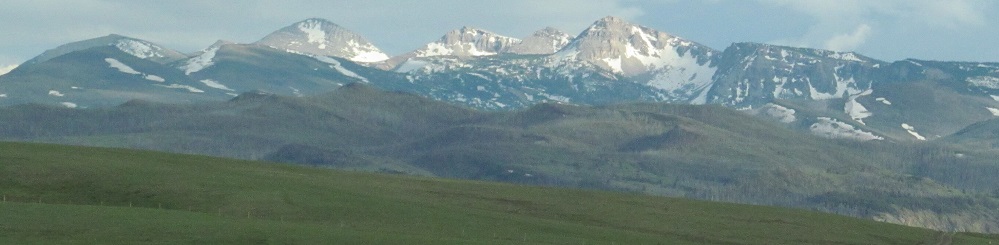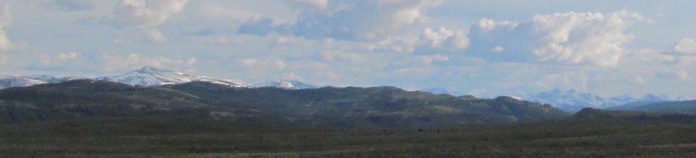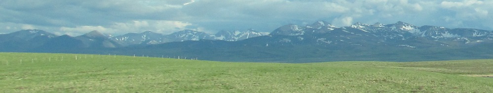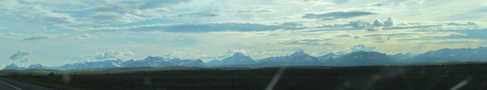 Another long pan from left to right, starting in the Sawtooth Range. I can tell you the last photo features Dancing Lady (née Squaw) Mountain, Bearhead Mountain, Mt. Ellsworth, Mt. Henry, and Bison Mountain starting from the left. Others may be visible here. Just call them the Rockies.