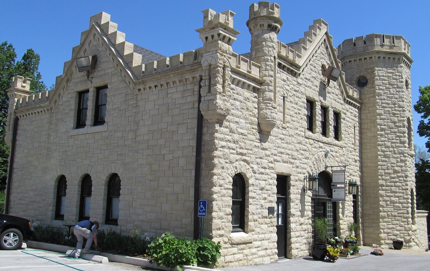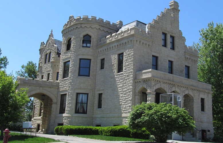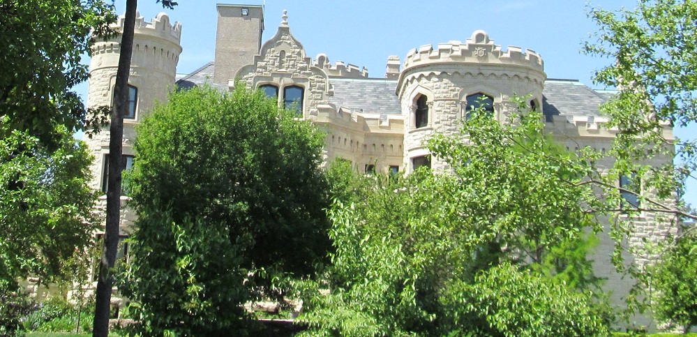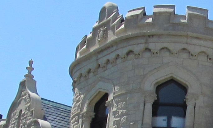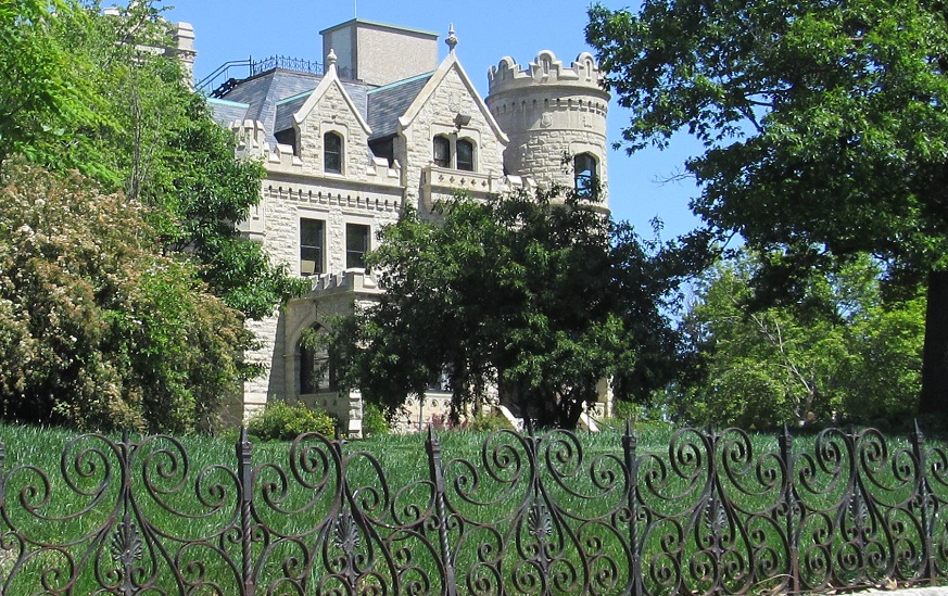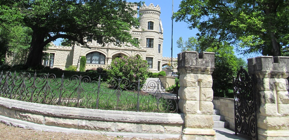 This is Lynhurst. Don't look for that, though, because it's known as the Joslyn Castle based on appearance and its former owners' name. It actually only dates to 1903. The last three photos are of the matching carriage house to the north.