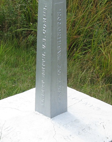 See, here's the Canadian border. Right here. I'm on it. Think this is the closest you can get without clearing Customs? Think again. Confusingly, the marker is stamped Treaty of Washington, August 9, 1842, from US Commissioner Albert Smith, but the base is stamped 1889. Which is it? Take note that the base is also stamped "484A," which will only confuse you till I get another caption or two down.