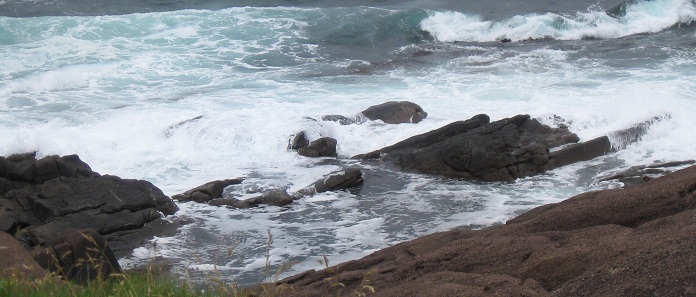 From the lighthouse, I pan east to a World War II bunker that guarded the island from Axis invasion. With a formidable battery inside the harbour and rocky cliffs preventing a typical ground or water assault, Newfoundland had very little to fear despite its strategic location. The wise invaders would duck south and work their way up by land, but they would likely be seen from here or St. John's in the process and intercepted. I'm guessing the rusty pipes sticking out of the ground were to deliver air to underground chambers.