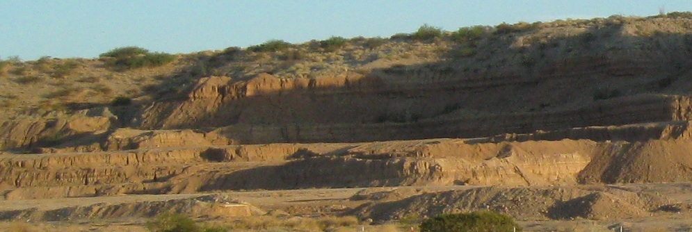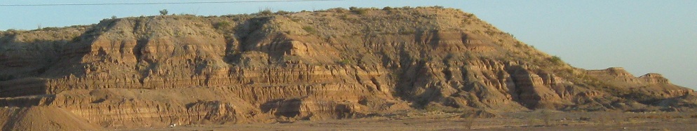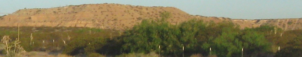 Looking west from State Road 136. This sort of "mini-canyon" scenery is common in the desert, where sandstone hills form and then erode into colorful patterns.