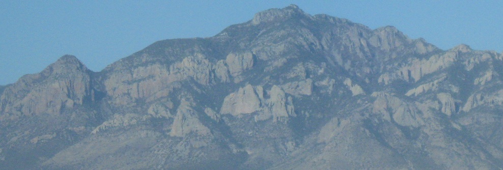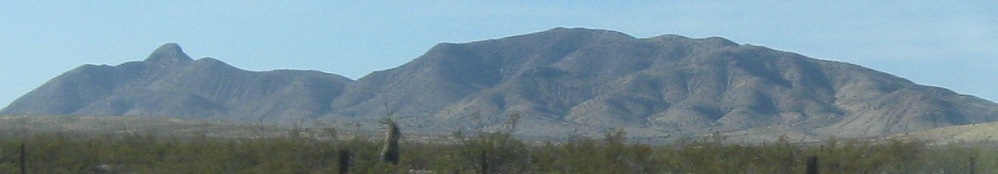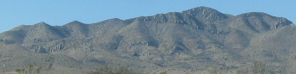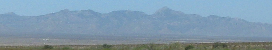 Over the rise of the Peloncillo Mountains, and that's Arizona in the distance, represented by the much taller Chiricahua Mountains.
