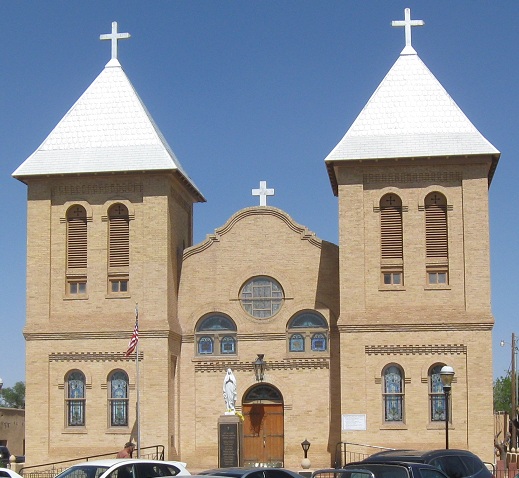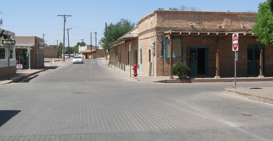Mesilla Plaza, the heart of Old Mesilla, a small Mexican town just outside Las Cruces that never fully adopted the trappings of the United States. San Albino Church is at the top of the square.