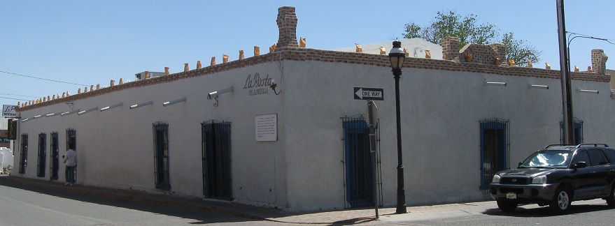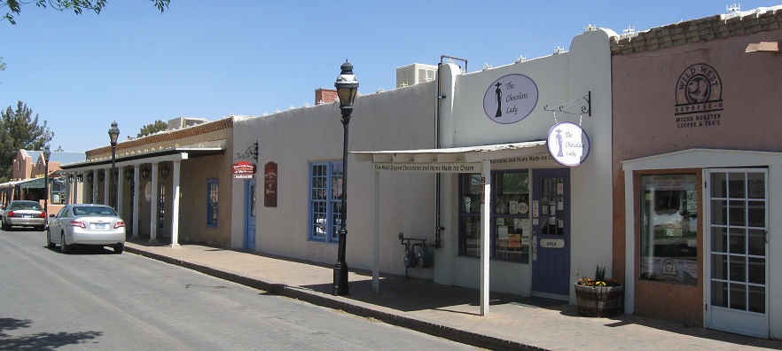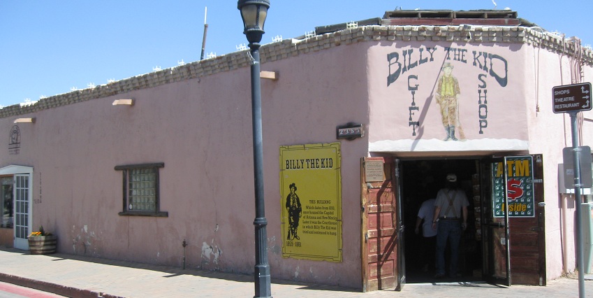 Walking counter-clockwise around the plaza from the church. What's now a gift shop is the courthouse that convicted and hung Billy the Kid in 1881. Built in 1850, this building was also briefly the capitol building of Confederate Arizona, a paper territory that the Rebs were never strong enough to wrest from the Union. It doesn't much resemble either a Capitol or a courthouse.