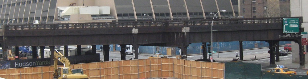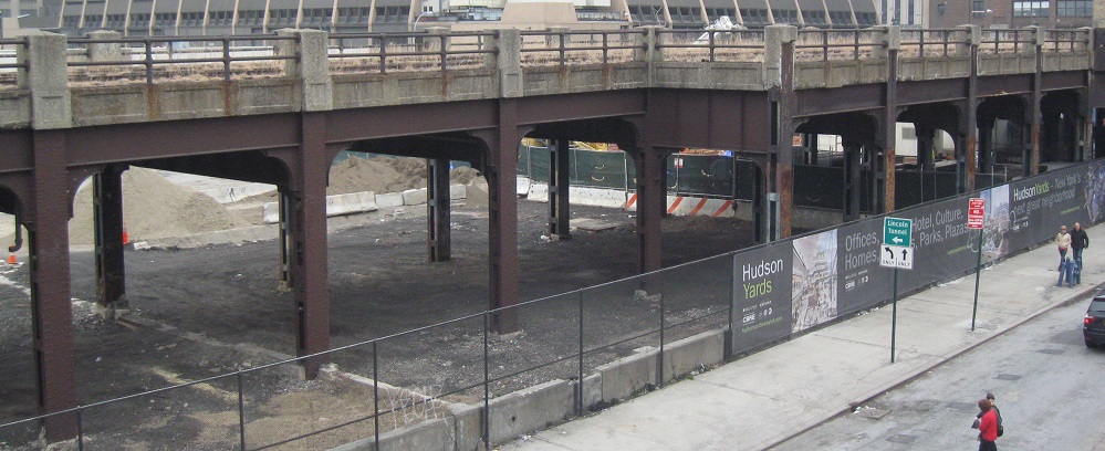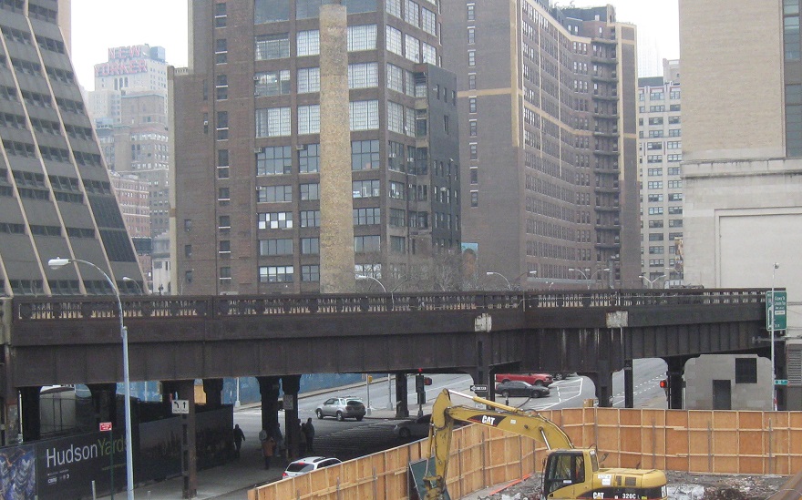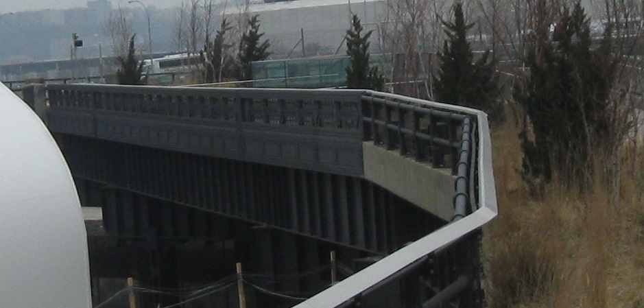 After the main path separates from the railroad bed (still accessible by gravel garden paths), this is just about the end of the park. The main High Line curves sharp left at 30th St. and then curves right next to 12th Ave. (right next to the former West Side Highway), curving right once more to end at 34th St./11th Ave. The spur line/siding branches east over 10th Ave. Neither one was accessible to the public in 2012, but now both the spur and mainline are fully converted to park space. (The spur opens sometime in 2015, and I'm writing this in June 2015, so just bear with the short overlap.)