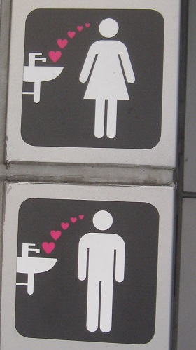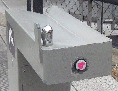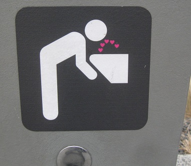 There are other art installations up here. The second one, which actually ranges along the length of the High Line, was installed by Julianne Swartz. When it works, it's intended to pipe music and happy messages to the user. Sorry, there's no water at this fountain, but push the button for some love. Hope it satisfies your thirst. Sorry, there's no elevator here, but you can ride the heart up and down. Just make sure to show your love to the other two people trapped with you. Sorry, there are no bathrooms here, but if you drank too many hearts at the fountain or got motion sickness from riding the heart, you can deposit your excess hearts in the lavatory. (Actually, all of these facilities are supposed to be functional - but then again, so is the installation, which was decidedly inactive during my visit.)