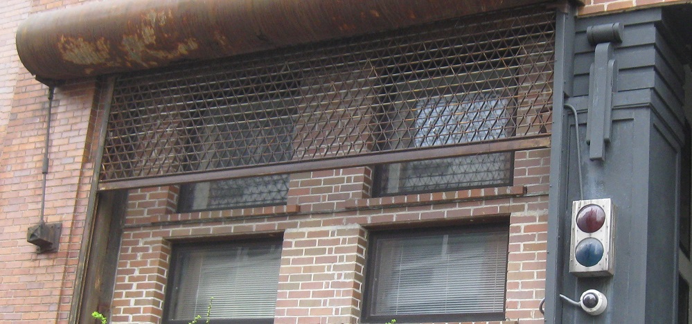 The north side of that building has a roll-down gate to the left of the main tracks for a former elevated siding (now just part of the park). The old signal remains as a curio after more than 30 years of inactivity.