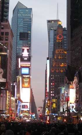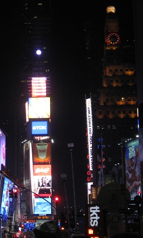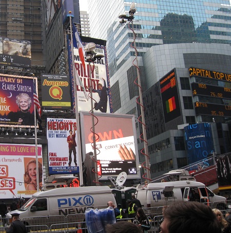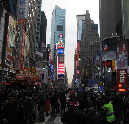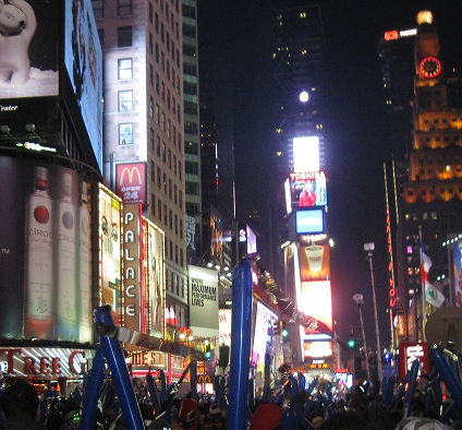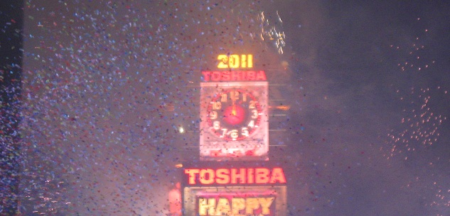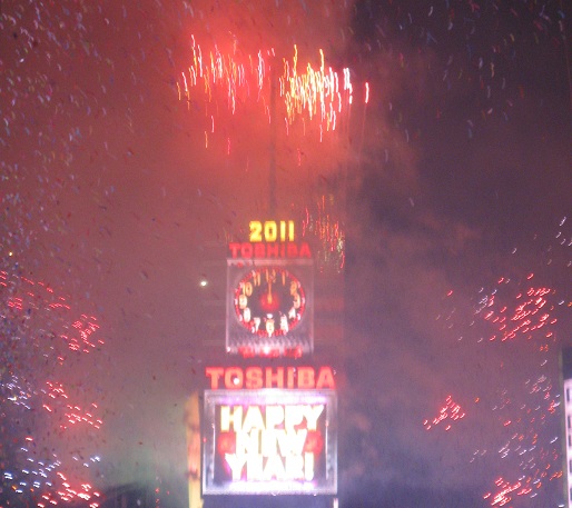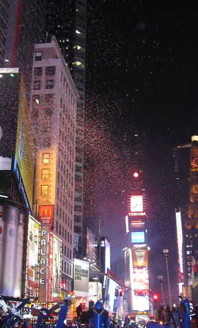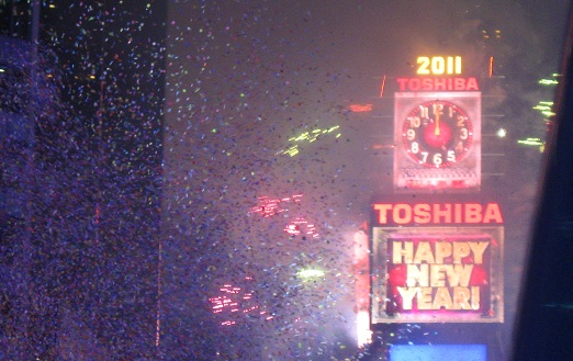 Every hour, Times Square celebrated another new year for another slice of the world. The big Toshiba screen even celebrated Newfoundland at 10:30, but no countdown, cheering, or confetti. Or fireworks, but that doesn't begin with 'c.'