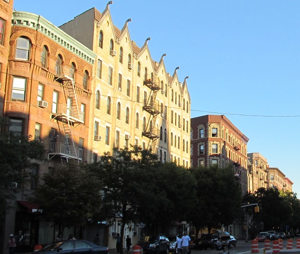 St. Nicholas Avenue crosses the boulevard at 116th Street, so #121 St. Nicholas is easily visible on the northwest corner. It dates to 1910.
