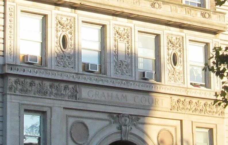Graham Court, built in 1920, is on the east side of the boulevard (formerly 7th Avenue) between 117th and 116th Streets.
