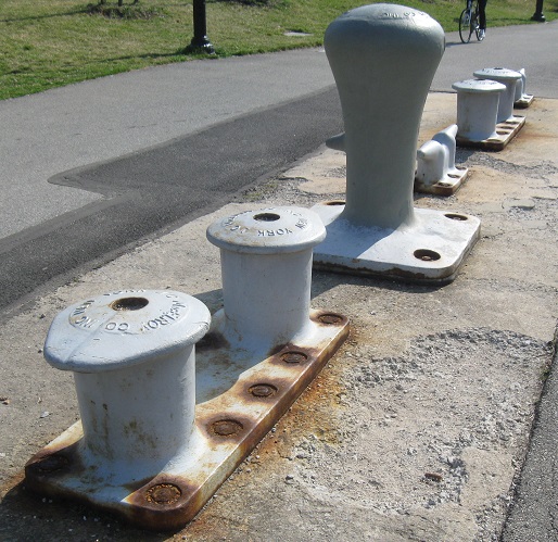 I learned well after taking these photos that this boat hull is actually just a 1997 art project to memorialize the former Roosevelt Island boat landing up by what's now Octagon Park (fields to the southwest of the Octagon that the patients once played in). I'm assuming the mooring is also not original, but given the stampings it could be the only genuine part of the exhibit. It's a shame that no one is preserving the hull from other "artists."