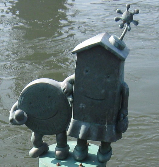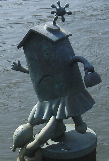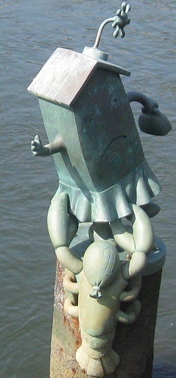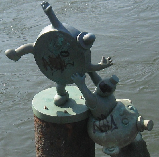 More art, it just bleeds from all sides of the boat hull. The sculptor is Tom Otterness, and he somehow thought this had anything to do with property and money. He must have become frustrated with NYC real estate prices.