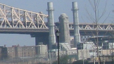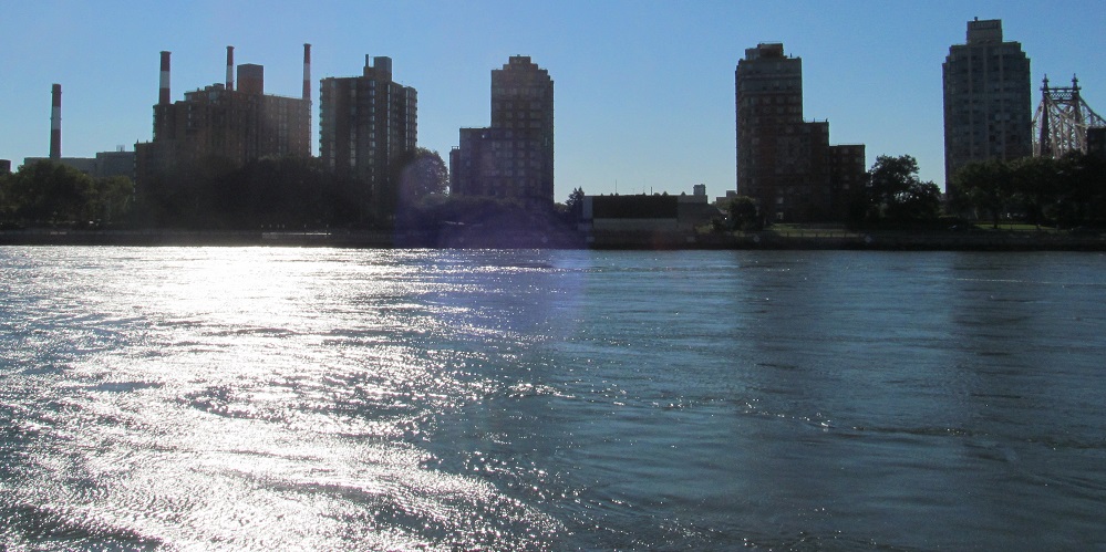 The E. 74th St. steam plant, from an angle you'll never see in Manhattan, which then anchors the south end of the view from the northern tip of Roosevelt Island.