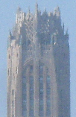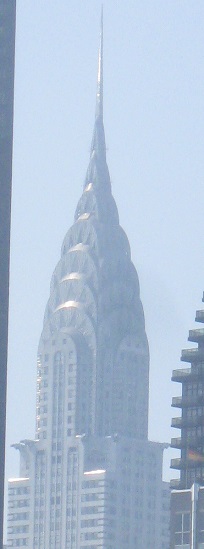 From the southern end of Roosevelt Island, the view to the west is dominated by the River House (toward the right of the 3rd and 4th photos), but a couple other historic buildings sneak in. You probably recognize the chrome Art Deco spire of the Chrysler Building, but are you as familiar with the decorative upper reaches of the RCA Victor (now General Electric) Building? The decorations are supposed to represent electricity and radio waves, but they just look like a hot mess.