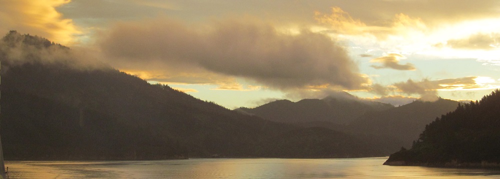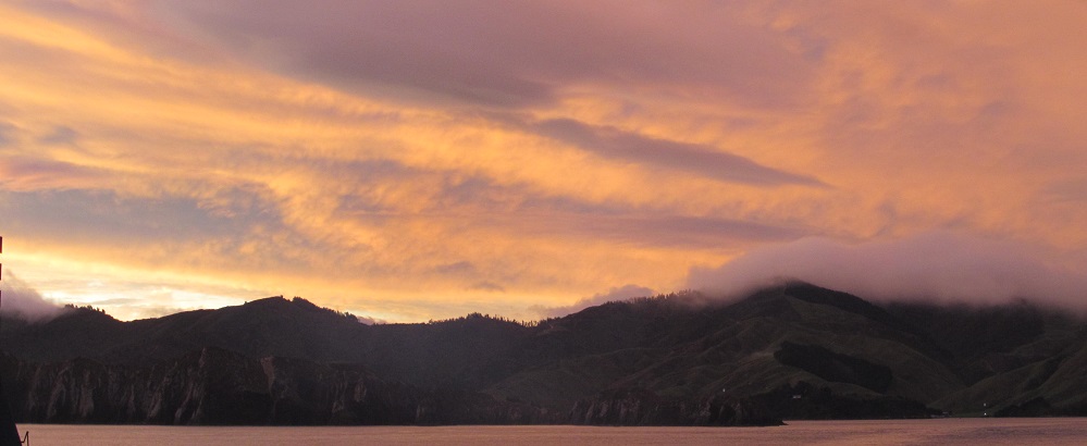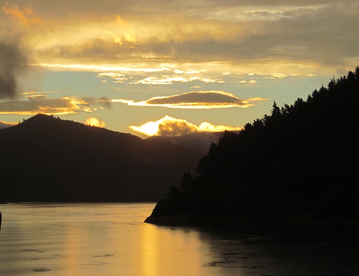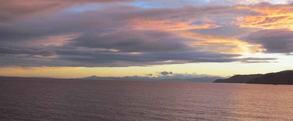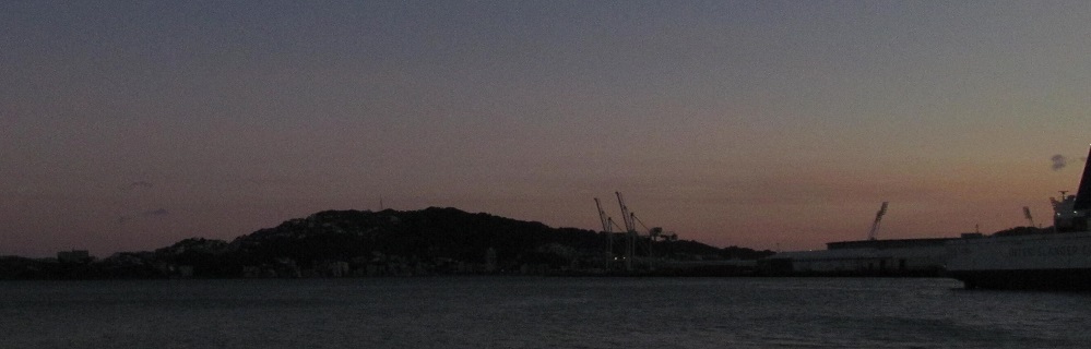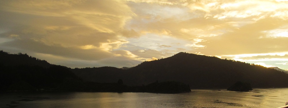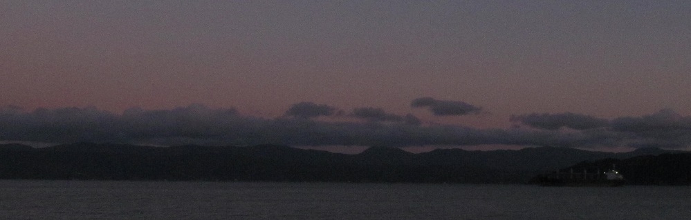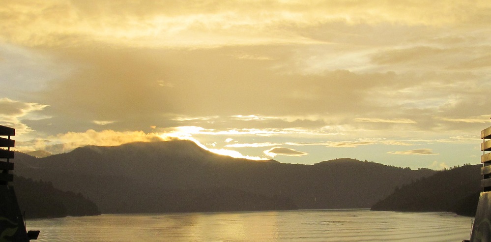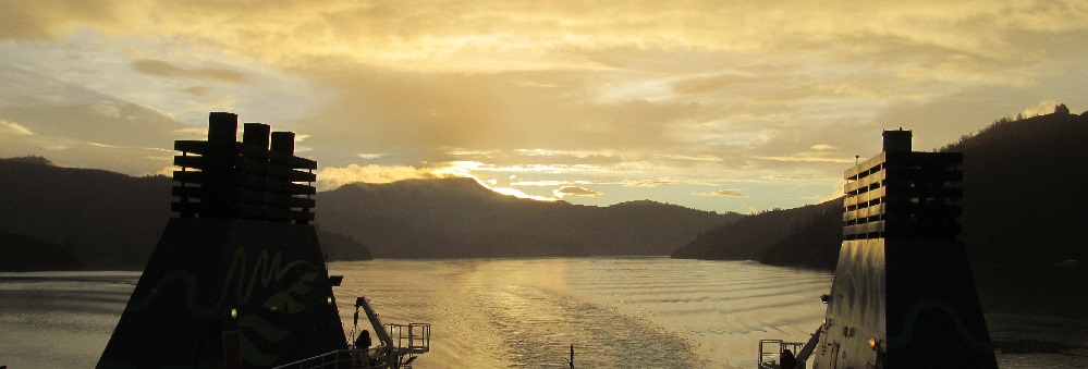 The ferry slowly pulls away from Arapaoa Island as the sun slowly sinks below the horizon. It's just over 50 km from here to the mouth of Wellington Harbour.