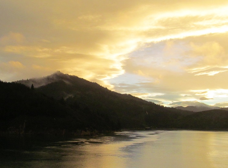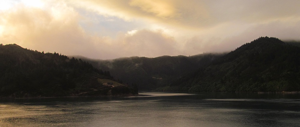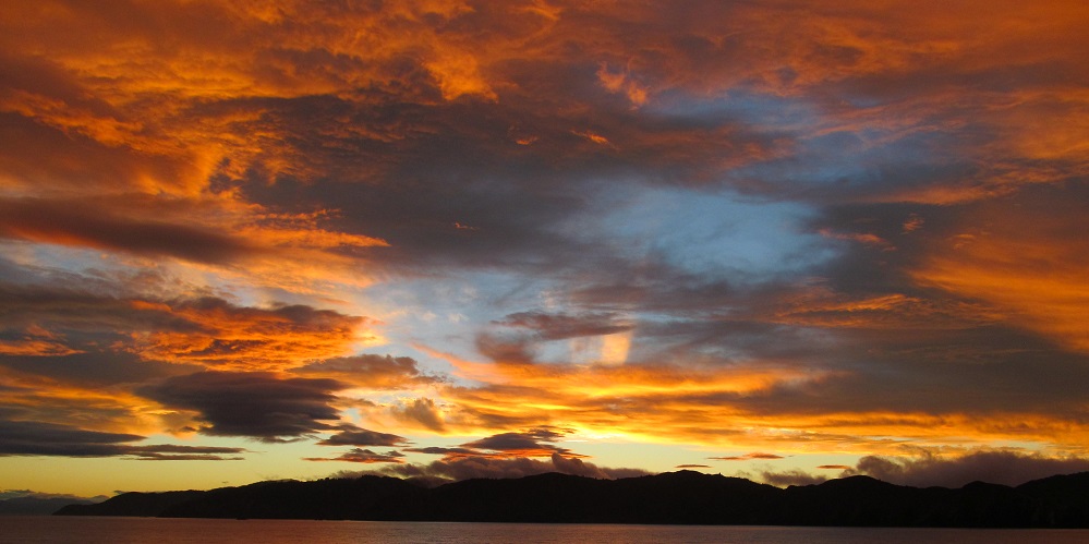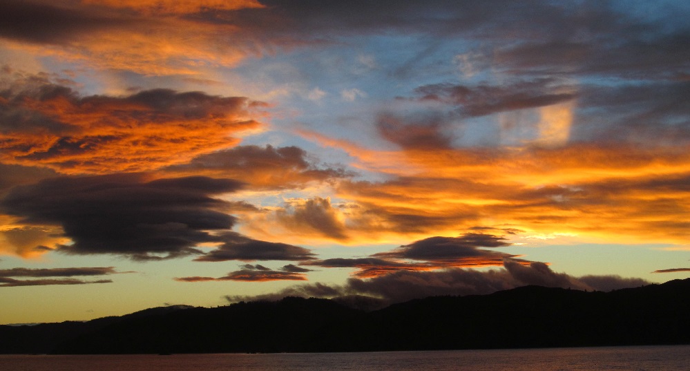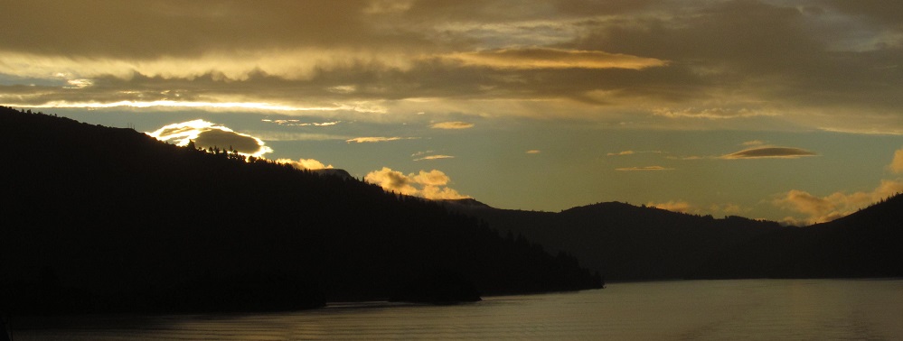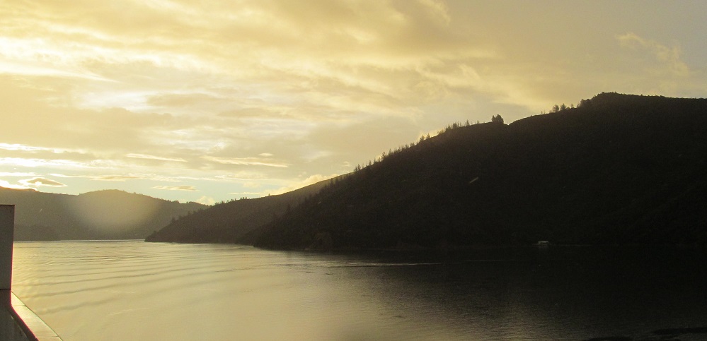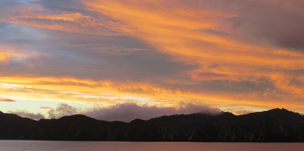 The ferry slowly pulls away from Arapaoa Island as the sun slowly sinks below the horizon. It's just over 50 km from here to the mouth of Wellington Harbour.