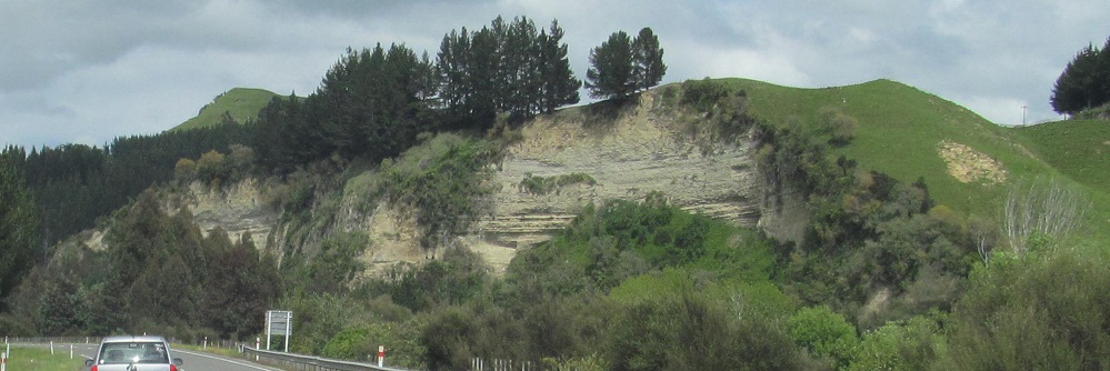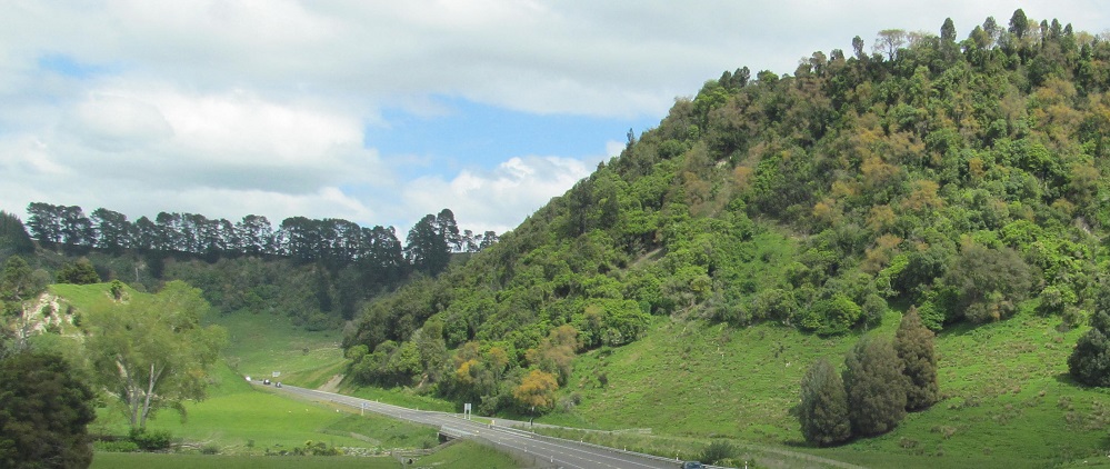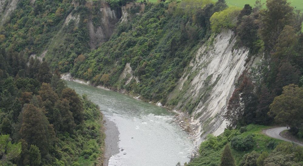 Highway 1 follows the Rangitikei River south of Utiku, where the Hautapu River that was following 1 meets the Rangitikei. It erodes away sandstone hills to leave interesting formations.