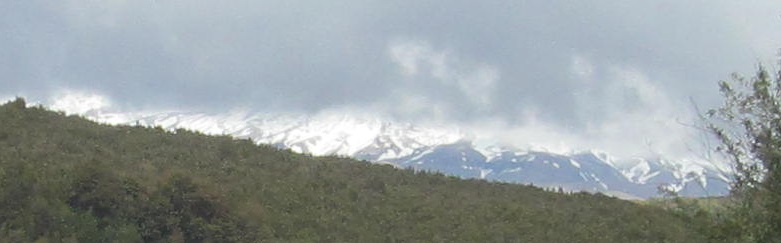 Passing by the west side of the Umukarikari Range, whose highest and most scenic points are obscured by clouds behind the foothills.