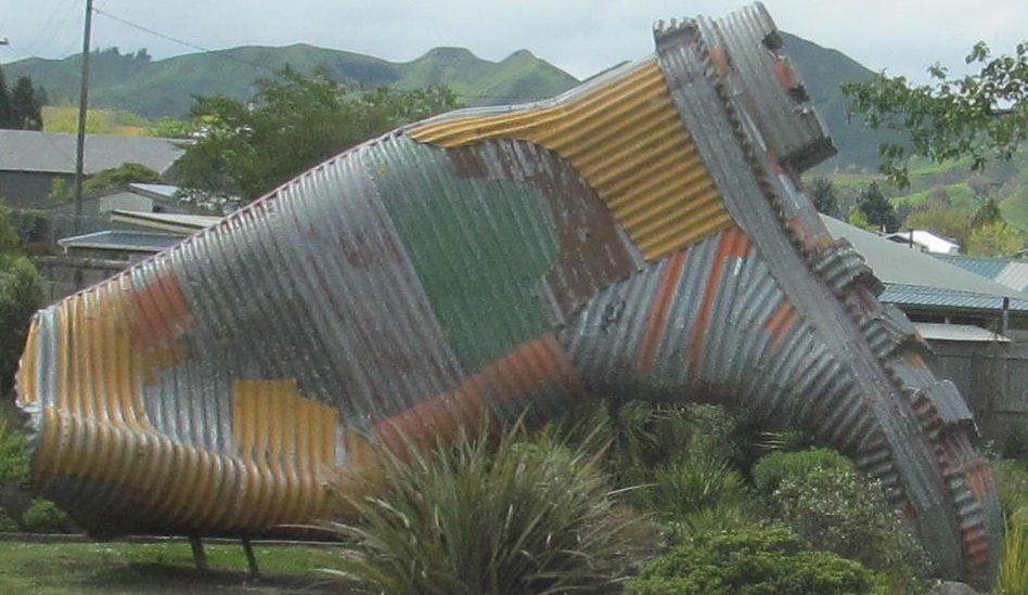 Taihape hails itself as the Gumboot Capital of the World, so it greets you with a gumboot, and then presents you with a man attached to a building. Only one Big Thing is never enough.