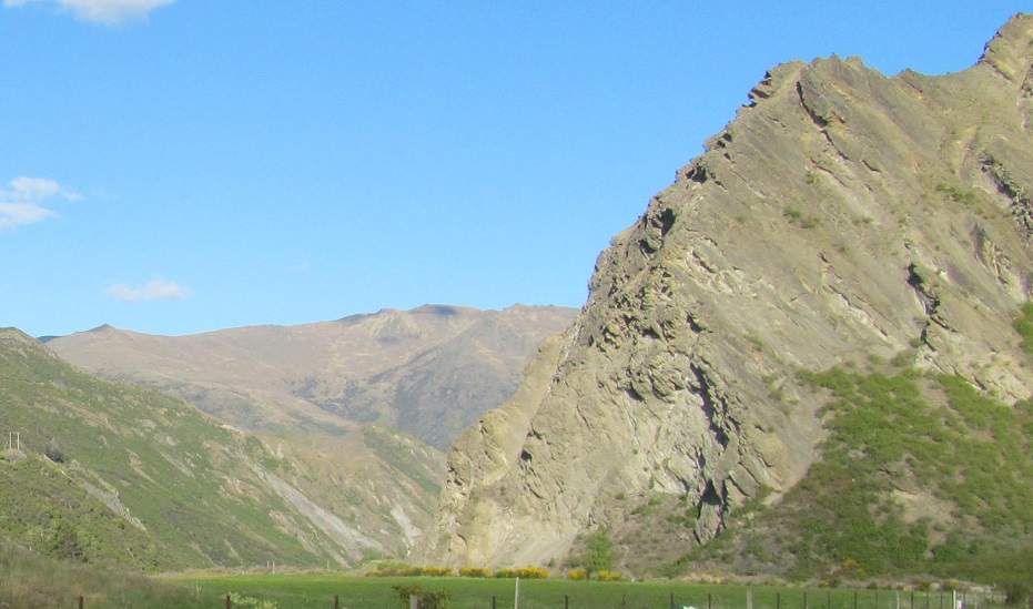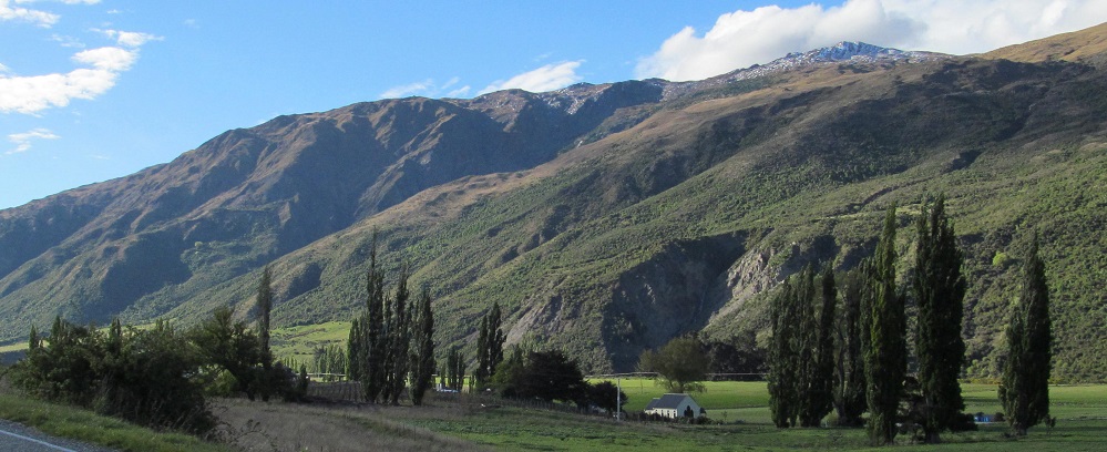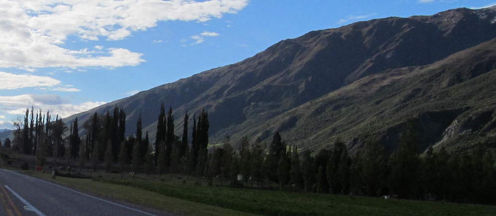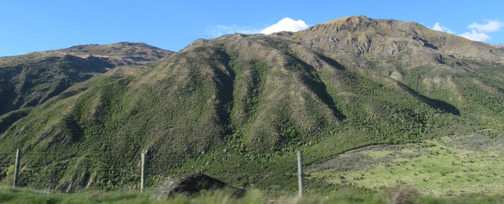 Just kidding, there's cool stuff to the left as well (at least starting now). This mountain range is simply known as the Remarkables, rising over 2000 meters by Lake Wakatipu. They may look more remarkable from there. Photos then look progressively more left until I'm turned around.