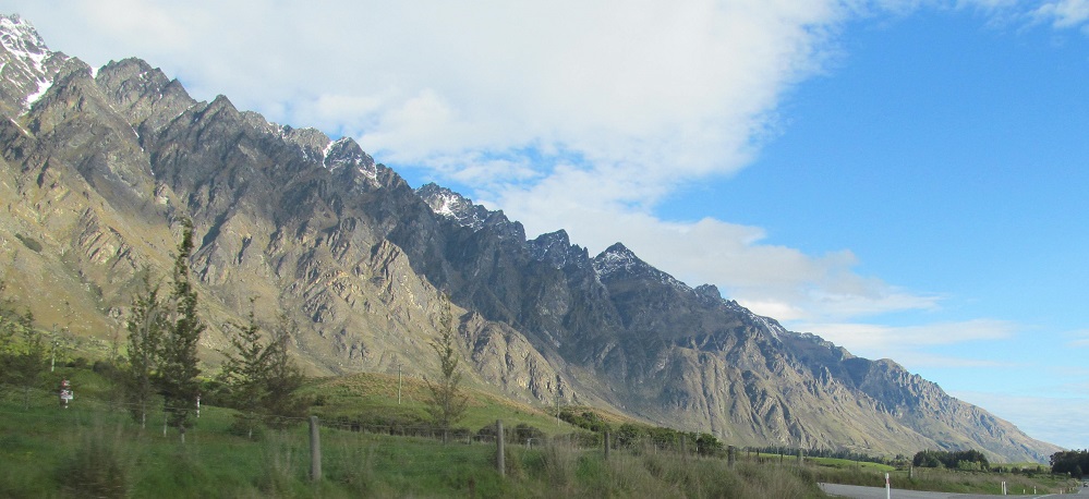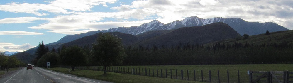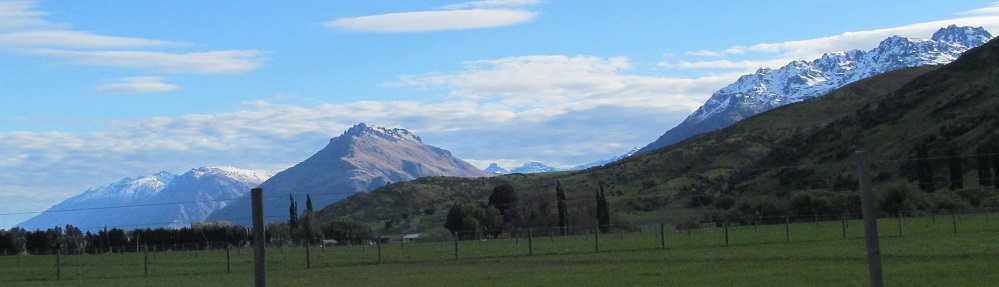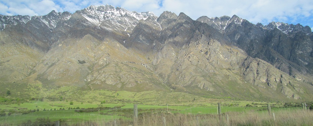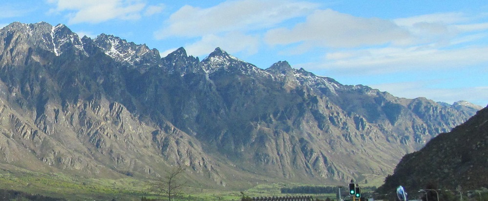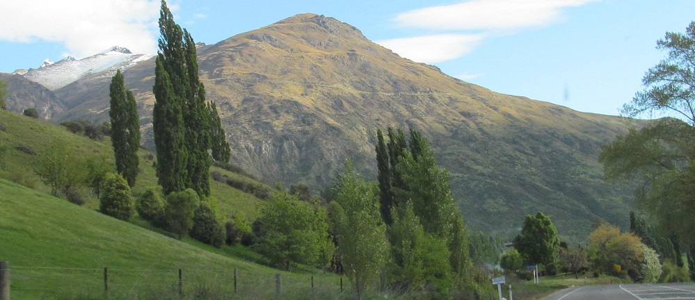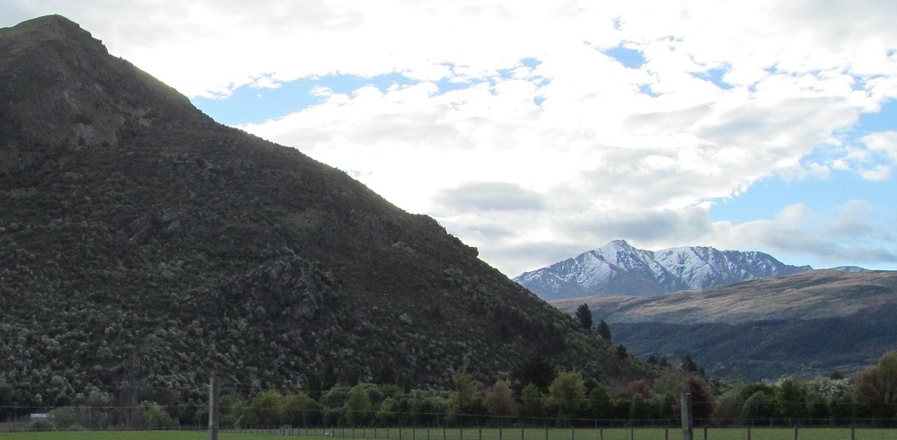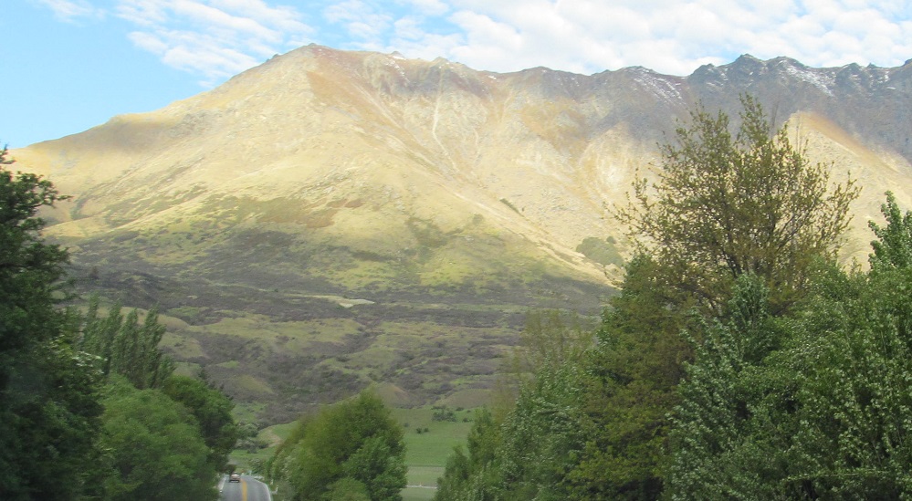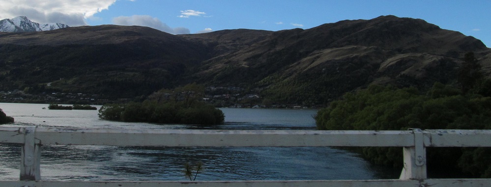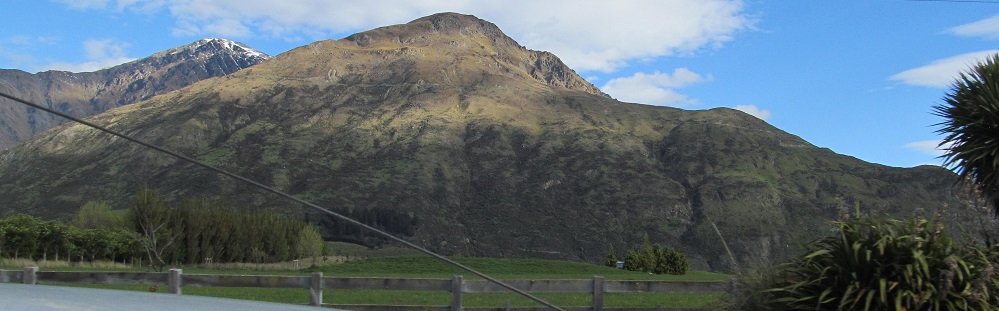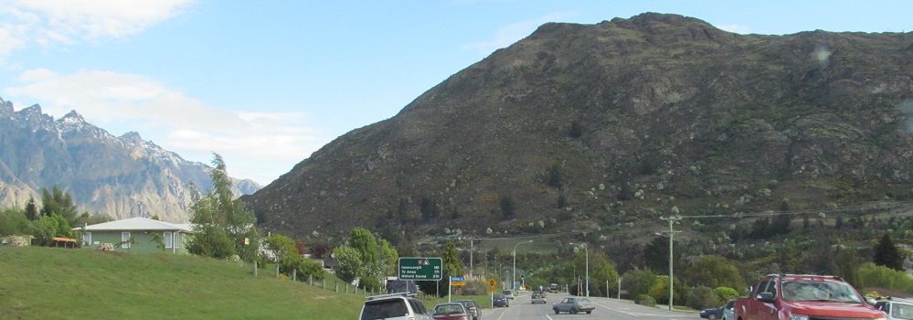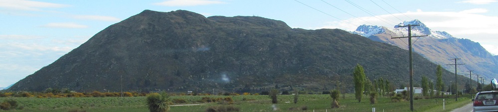 As Highway 6 turns south, I get the briefest of glimpses across the Frankton Arm of Lake Wakatipu. Between Cecil Peak (1st photo far left) and Ben Lomond (2nd photo right) there's Walter Peak, Afton Peak, Mt. Nicholas, and the Thomson Mountains. This is about all you can see of those four from Highway 6.
