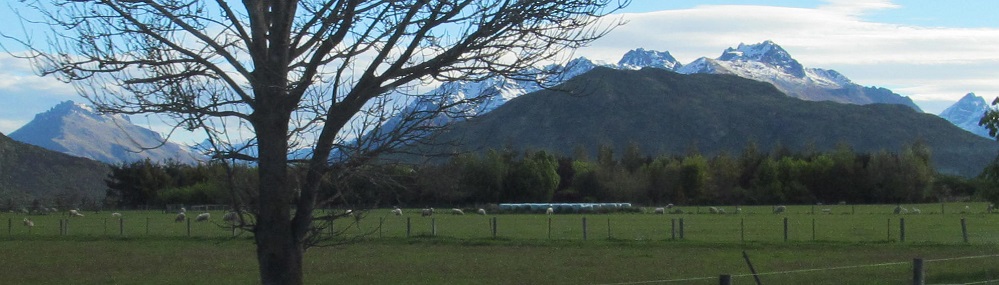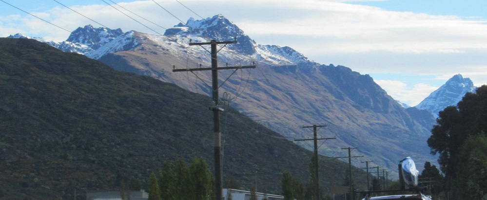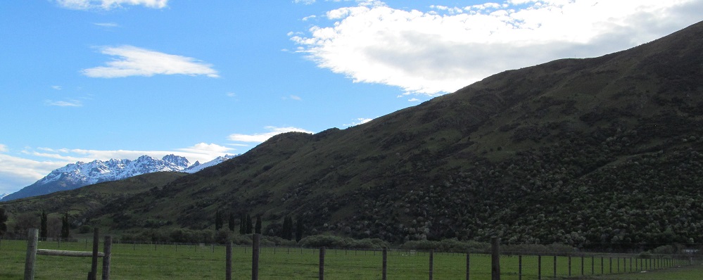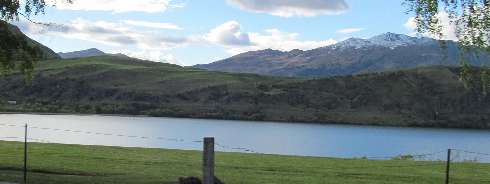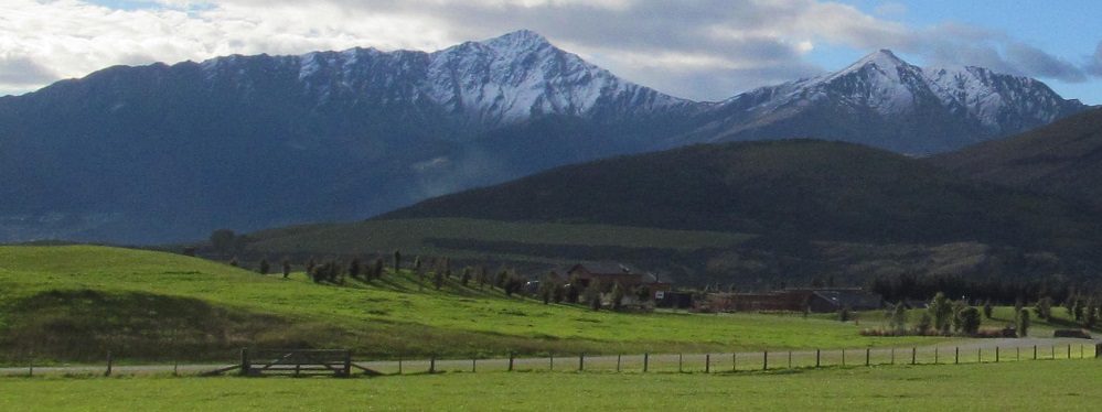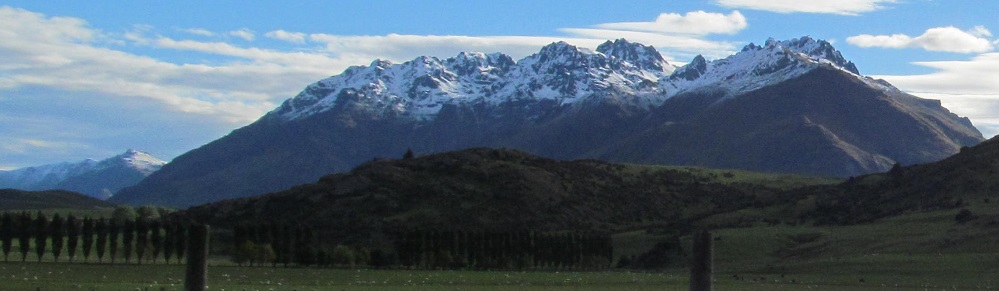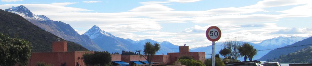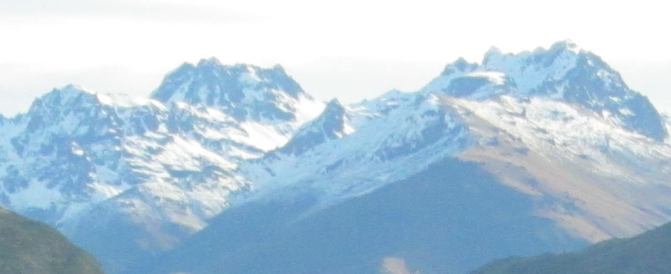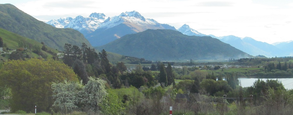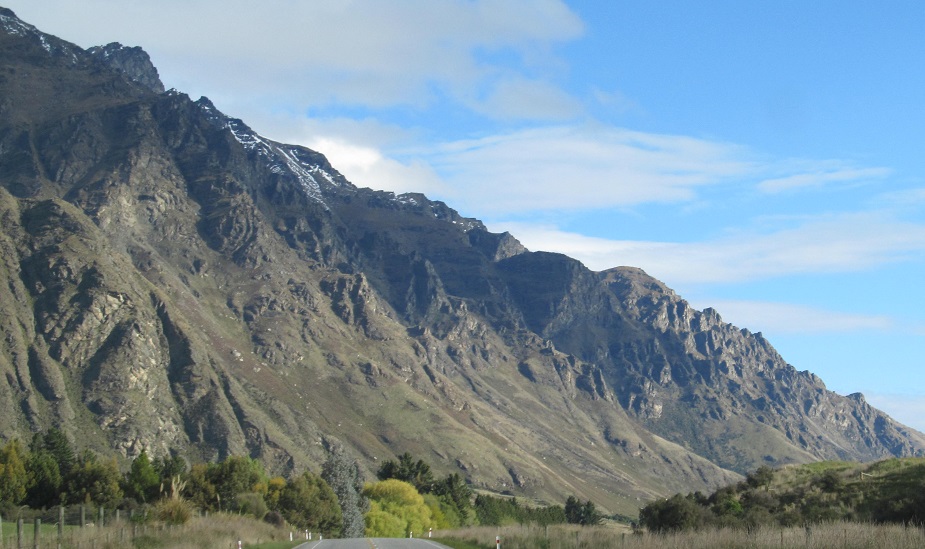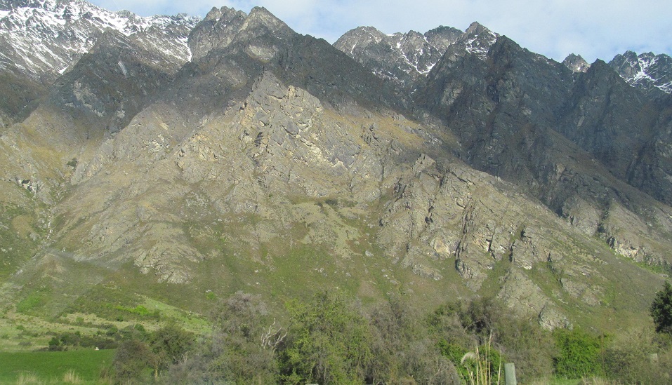 As Highway 6 turns south, I get the briefest of glimpses across the Frankton Arm of Lake Wakatipu. Between Cecil Peak (1st photo far left) and Ben Lomond (2nd photo right) there's Walter Peak, Afton Peak, Mt. Nicholas, and the Thomson Mountains. This is about all you can see of those four from Highway 6.