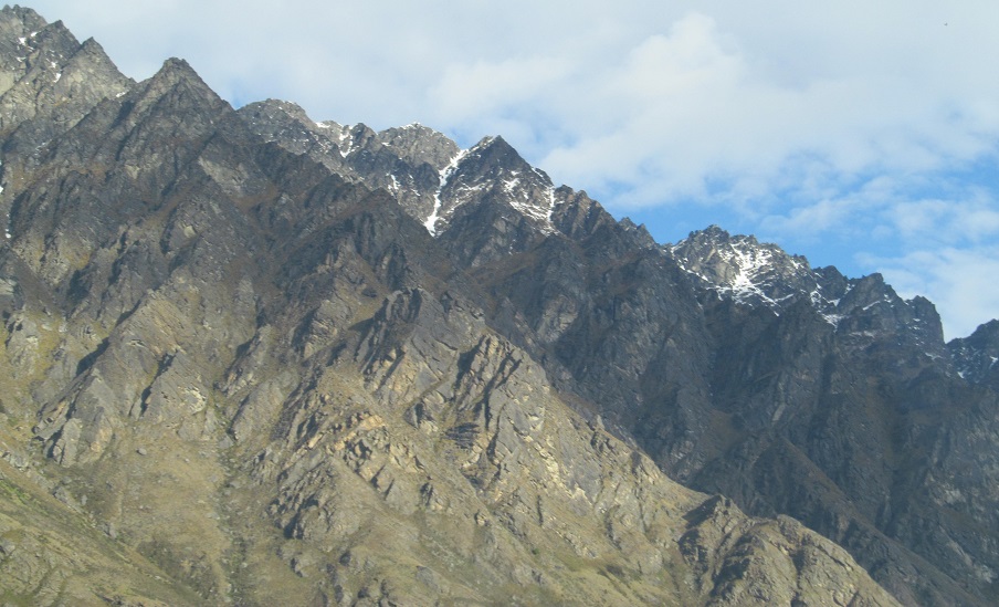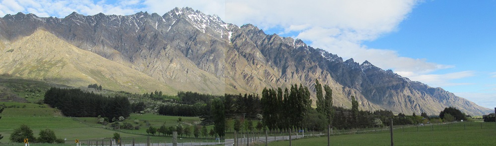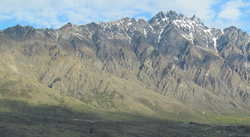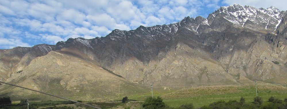 Southerly shots of the base of the Remarkables range (more on those in a bit) frame some other mountains to get acquainted with: Ben Lomond and Bowen Peak to the west in the 2nd photo (Bowen is shorter but closer, so they look about equal) and more of that Cecil Peak to the southwest in the 3rd.