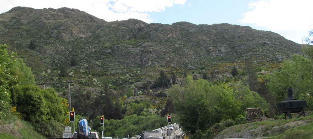 Approaching Peninsula Hill at the old Kawarau River bridge. It has since been replaced and is now a walking trail.