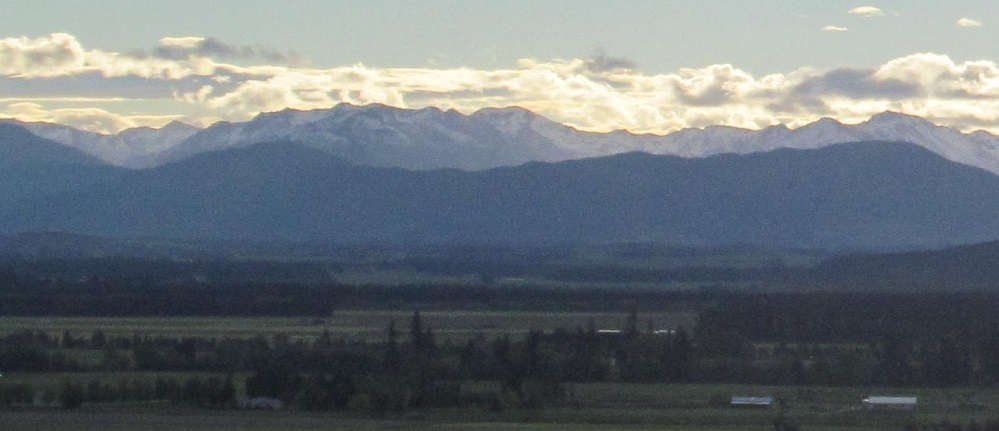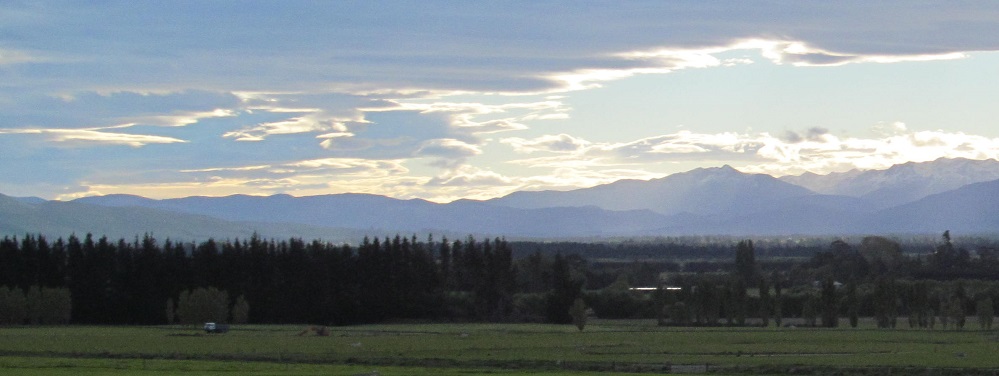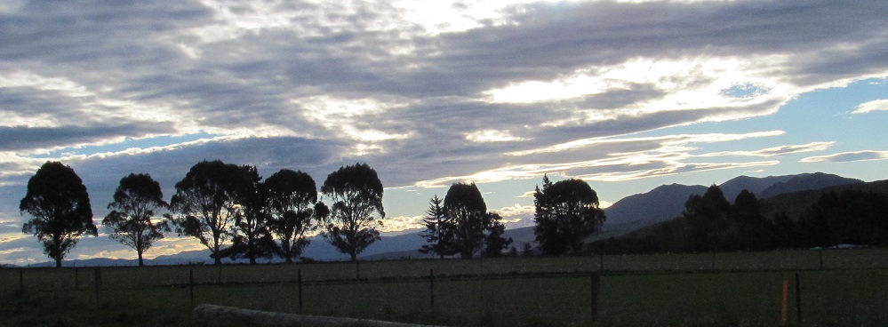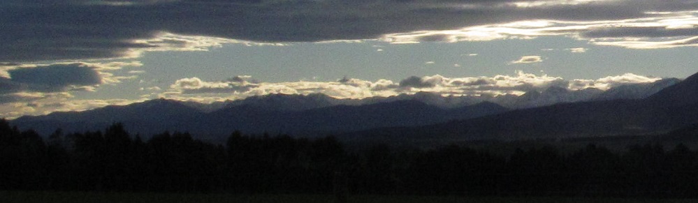 Somehow, I can still see the Helen Peaks of the Eyre Mountains sunlit as I look north from Lumsden. This'll be the last we see of Mr. Sun.