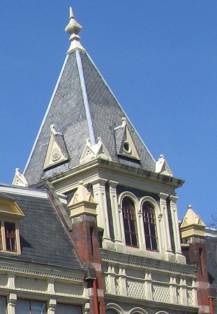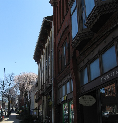 I'll call this the 1887 Building, because that's all I can make out. The last two photos head downhill and look west past Talleyrand Park and its mostly ornamental train station (good only for scenic rides).